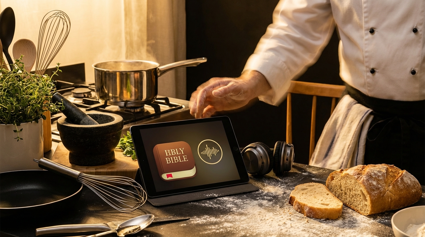 For busy cooks, audio is not a luxury feature. It is often the only way Scripture fits into the real rhythm of the day.